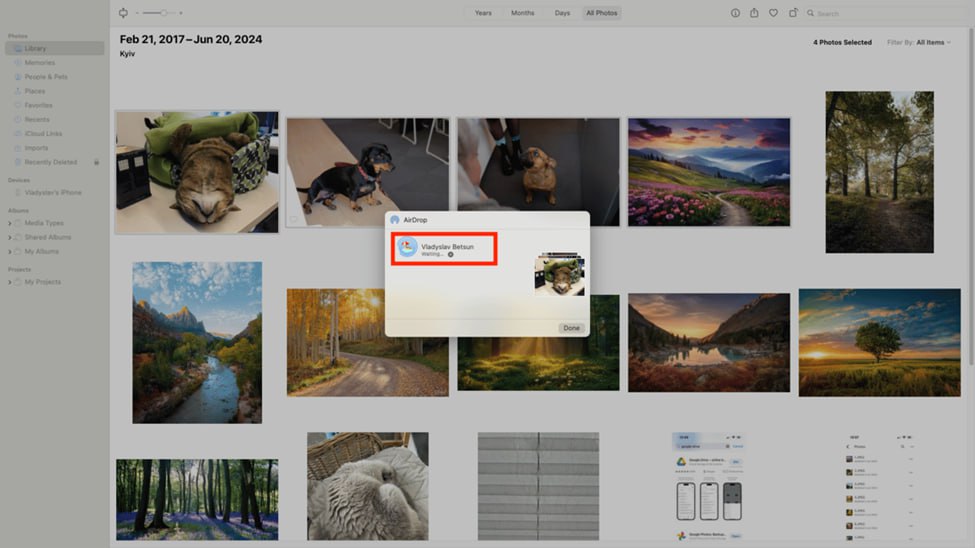 اگر کابل در دسترس نداشته باشید یا بخواهید این کار را بدون دردسر و سریعتر انجام دهید، میتوانید از Airdrop کمک بگیرید. نحوه انتقال عکسها از مک به آیفون با این روش، به این صورت است:
