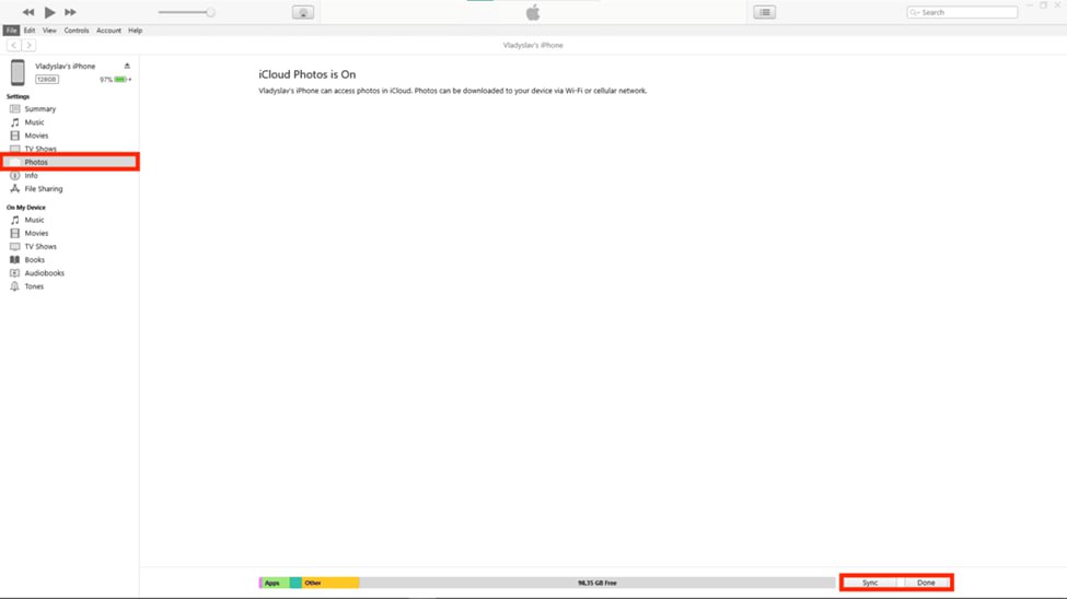 شیوه انتقال عکس ها از کامپیوتر به آیفون با iTunes
