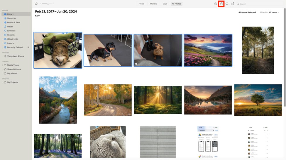 - در مک، برنامه Photos یا پوشهای که عکسها را در آن نگهداری میکنید را باز کنید.
